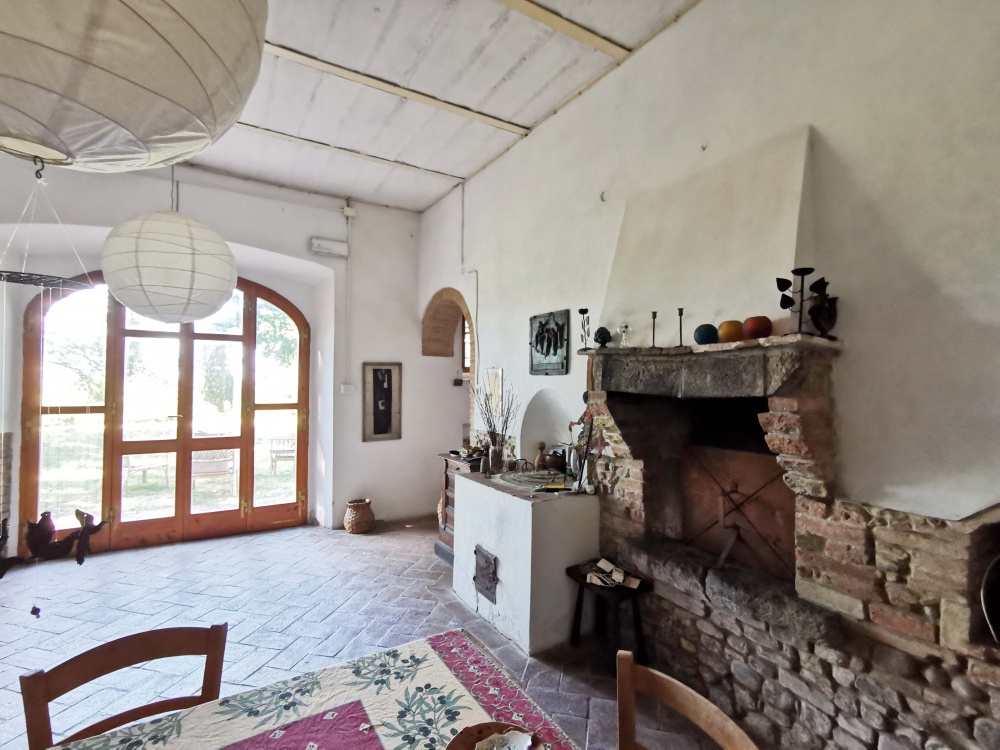 La casa offre al visitatore il tipico calore e il tipico carattere delle vecchie case di campagna toscane. Entriamo in casa tramite una grande porta-finestra ad arco, che apre in una sala con forno a legna, cucina, ampio ripostiglio/lavanderia, bagno di servizio; salendo le scale interne raggiungiamo il salotto al piano superiore che ospita un tradizionale focolare. Questa accogliente stanza è il cuore del primo piano dal qual quale si accede alle 4 camere da letto, alla seconda cucina, al bagno e al vano scale che conduce alla colombaia del secondo piano. Al piano seminterrato troviamo una utile cantina/magazzino.